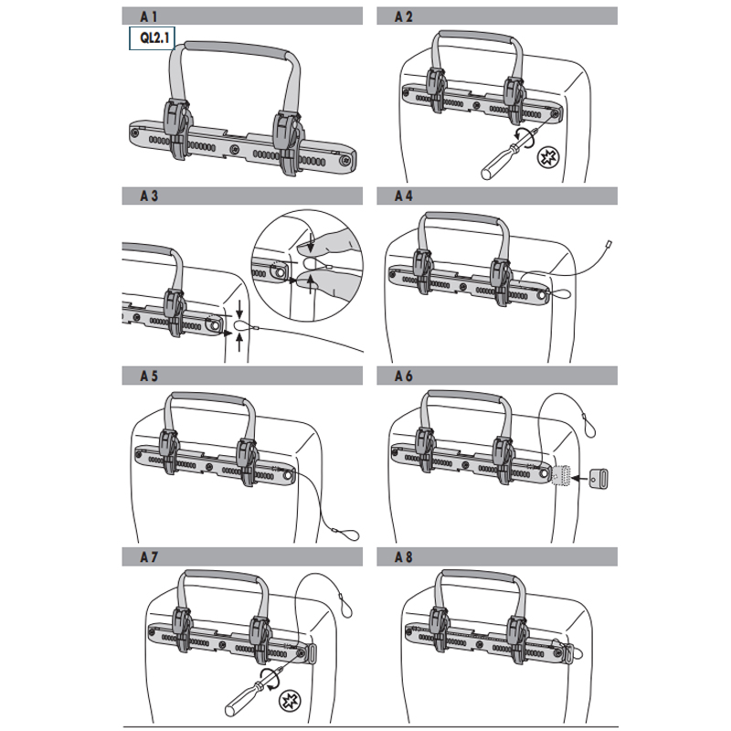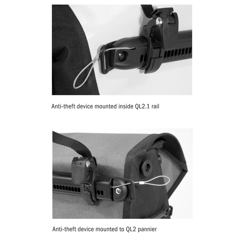 สายเคเบิลลวดเหล็กสำหรับคล้องล็อค (1 คู่) ช่วยป้องกันไม่ให้กระเป๋าจักรยานหรือกระเป๋ามอเตอร์ไซค์สูญหาย สามารถใช้ได้กับ QL2/2.1 หรือ 2.2