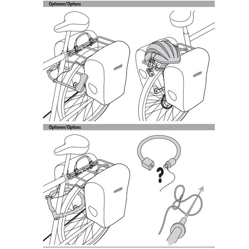 - แบบยาว (ยาว 25 ซม/น้ำหนัก 9 กรัม) สำหรับ Back-Roller, Bike-Packer, Bike-Tourer, Velo-Shopper, Office-Bag, Downtown Two, Commuter-Bag Urban, Bike-Shopper และ Recumbent-Bag