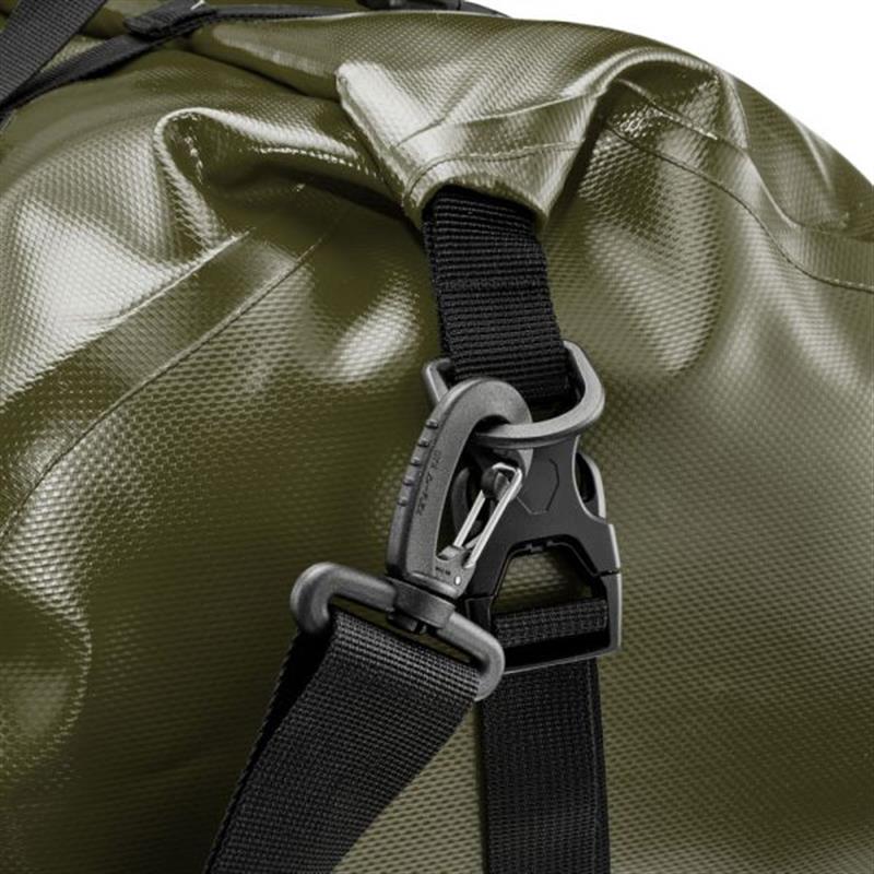 This 100% waterproof travel bag has all the advantages of an easy to use dry bag: its flexible and variable packing volume adjusts to any situation and takes all the gear for travelling and sports. The roll closure with stiffener bar has its roots in stuff sack technology. It fits perfectly into bike trailers and sizes 24 L or 31 L can be combined with ORTLIEB Back- and Sport-Rollers Plus and Classic on the rack for bike touring. This robust multi-talent bag is also good on motorcycles. Comfortably carried with adjustable padded shoulder strap and carrying handles. Rack-Pack is available in four sizes.