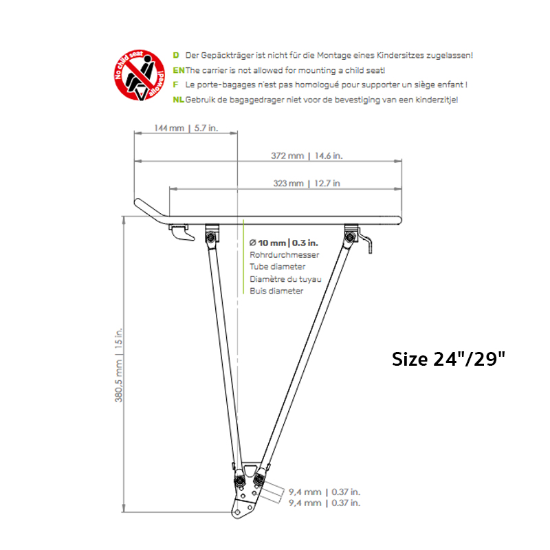 ตะแกรงหลังจักรยานสำหรับล้อ 24"/29" และ 26"/28" จากประเทศเยอรมัน